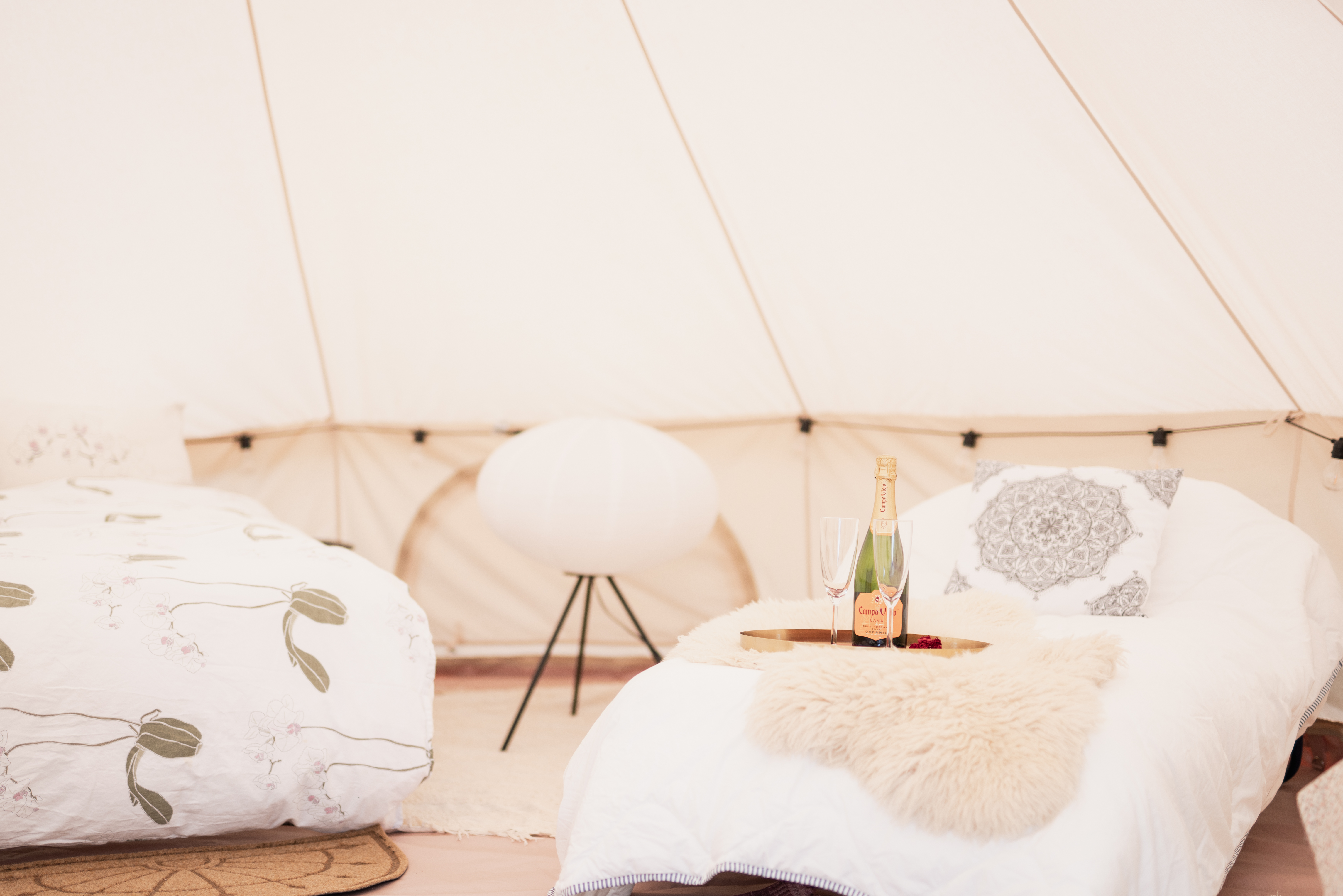 Upplev westernlivsstilen på ett mer genuint sätt och övernatta i vårt stora glampingtält. Tältet som är 28 m2, rymmer 2 enkelsängar och 1 stor dubbelsäng, perfekt för familjen. Du har en grillyta precis utanför tältet där du och sällskapet kan umgås runt elden. Det finns också ett utekök där du kan diska och tillgång till en delad wc-stuga med dusch, toaletter och tvättmaskin. Gratis Wifi ingår.